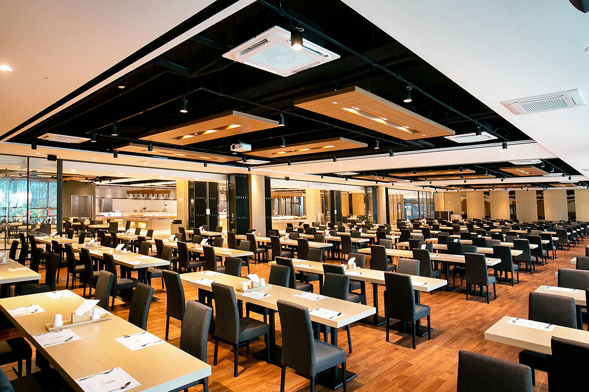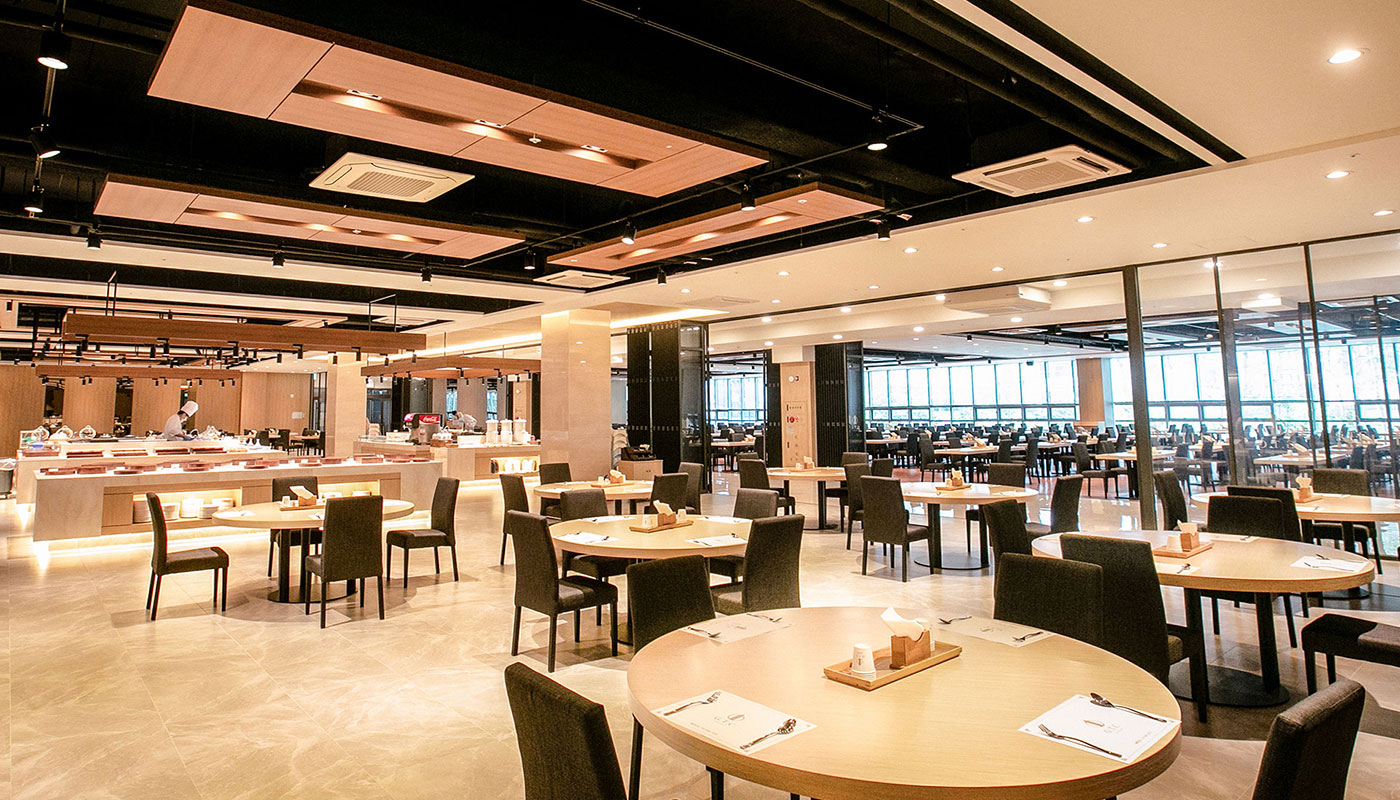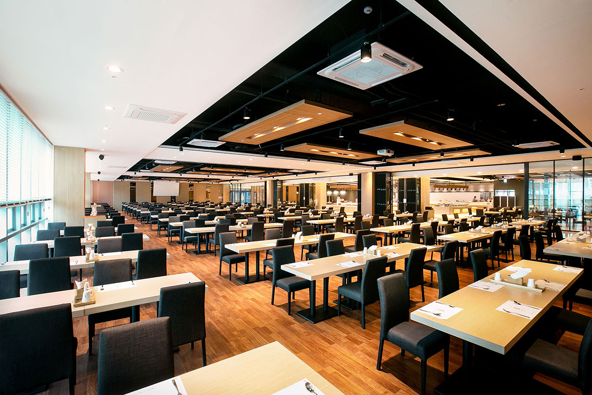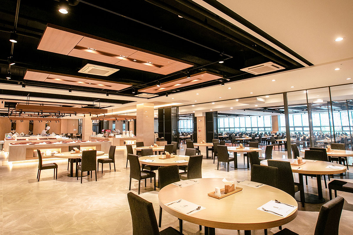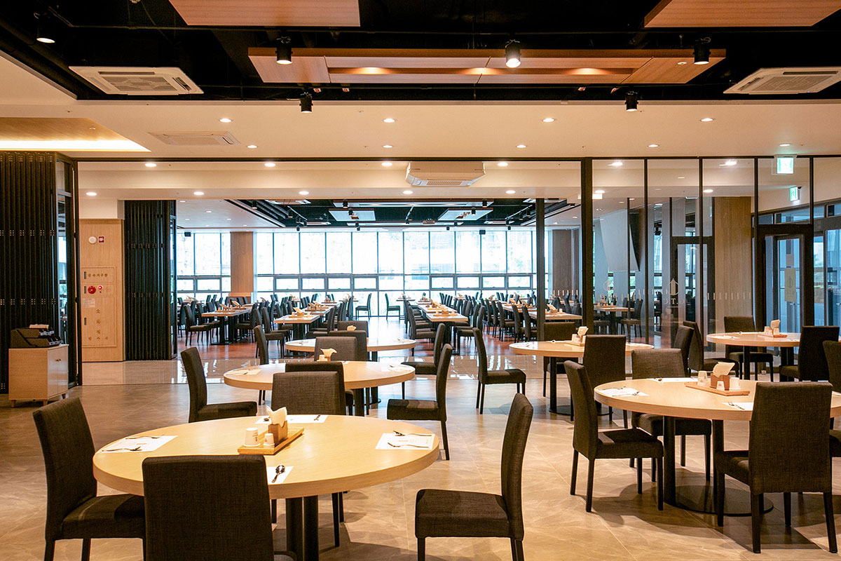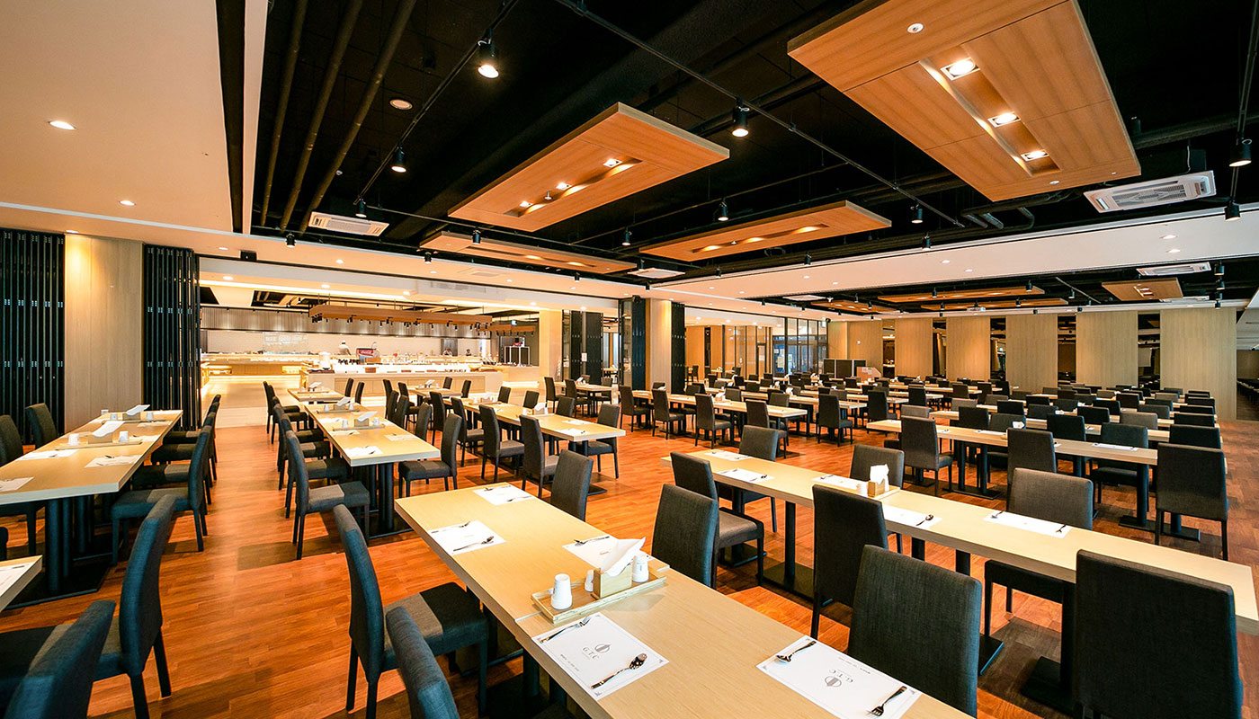 Banquet Hall 연회장 자연채광이 들어오는 연회공간과 정갈하고 맛깔스런 음식 자연채광이 들어오는 여유로운 연회공간과 품격있고 세련된 데코레이션, 파티공간과 어울어지는 디테일한 세팅, 최고 수준의 쉐프들로 구성되어 엄선된 식자재에 대한 고집과 맛을 통해 고객님께 행복을 전해 드립니다. 연회장은 2층에 800석 규모로 준비됩니다.